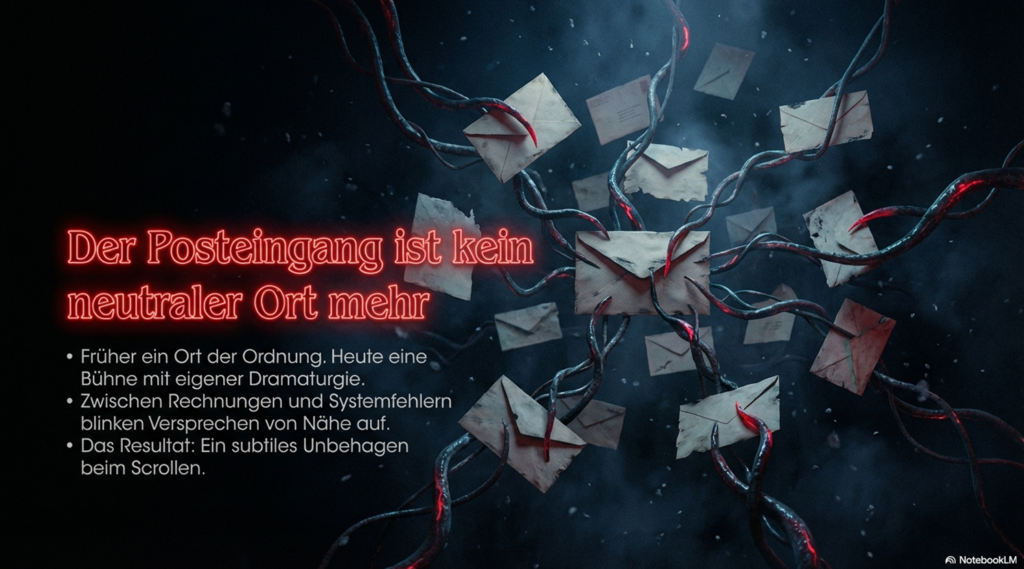 Früher war das Postfach ein Ort der Ordnung. Heute ist es eine Bühne mit eigener Dramaturgie. Zwischen Rechnungen, Systemmeldungen und Lieferbestätigungen drängen sich Betreffzeilen, die Nähe versprechen oder Bedeutung. Mit etwas Glück sogar beides.